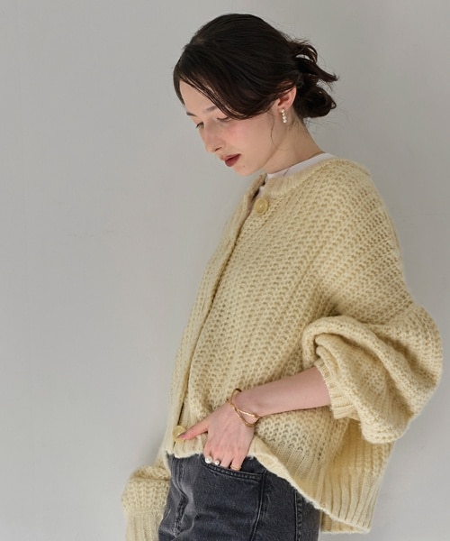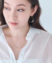 柔らかな表情を見せるパステルカラーのふわふわニットの普段着コーデ。アクセサリーはパールとゴールドで揃え、上品な存在感で大人の魅力をプラスします。初春を意識した明るいルックスを引き締めてくれるPhoebeのパールコレクション。