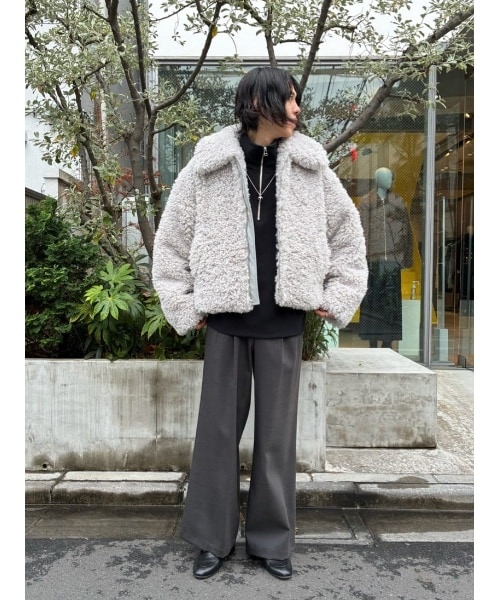 インパクトもボリュームもあるフェイクファーブルゾン、でも形はシンプルな短丈ブルゾンなので案外使いやすい。しかも軽くて暖かいので冬に重宝するアウターの一つです。