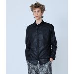 存在感あるメタルジッパーを両サイドに走らせた唯一無二のデザインのデニムにエンボス加工のシャツを合わせた、細部にこだわりの光るコーディネート。