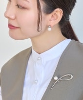 ちょうどいい存在感のメタルゴールドに小粒のパールを乗せた、上品かつエレガントなデザイン。ダウンヘアに合わせてさり気なく揺れ感を楽しむコーディネートもおススメです。ネックレスも同じデザインで揃えて、コーディネートにまとまりを。