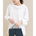 コサージュのように顔まわりを華やかにしてくれるブラウス!