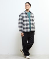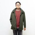 機能的でシンプル、使い勝手のよいボンディングアウターを使ったスタイル。同系色のダークトーンでスマートな印象に仕上げました。