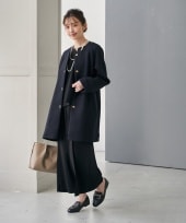 "【SALE】 ニットとスカートをドッキングさせたワンピース。 忙しい朝もこれ1枚でコーデが決まります。 ケーブル柄のフクレジャカードニットが秋冬にぴったり。"