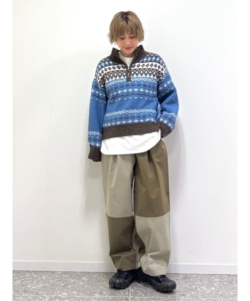 には外せないジャガードニット、今年はハーフジップ仕様になりました!すっきりとした丈なので、シャツやロンTを裾から出しても可愛いです。 カラーブロックが目を惹くパンツはぐるりとゴムで股上も深く履き心地抜群!丸みのあるシルエットがおしゃれです!