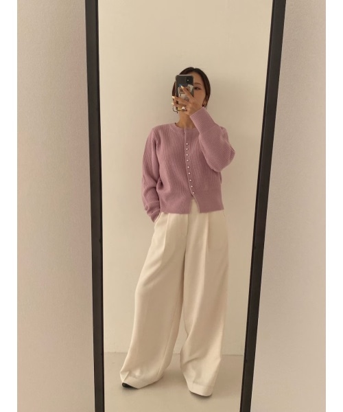 気分も上がるピンクニット! 小さめのボタンが女子っぽくて可愛いです、、! コンパクトなシルエットもちょうどよくて ワイドパンツともバランスよく合わせられます。 3月あたりまで着れそうなかんじ!