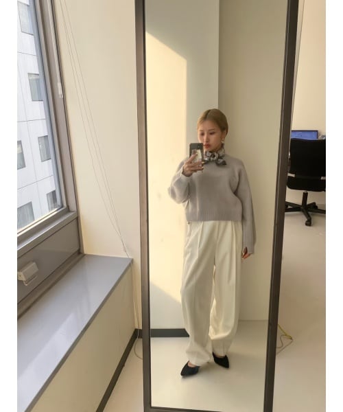 柔らかい肌触りが特徴のスーパーファインラムズウールを使用したニット。 ショート丈なのでバランスがとりやすいです! シンプルなニットをお探しの方におすすめ。