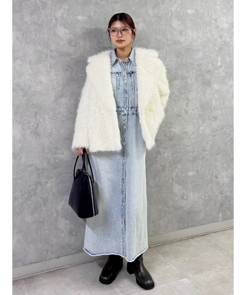 カールファーをミックスした可愛らしい印象 いつものPコートとはひと味違うデザインを楽しめます。