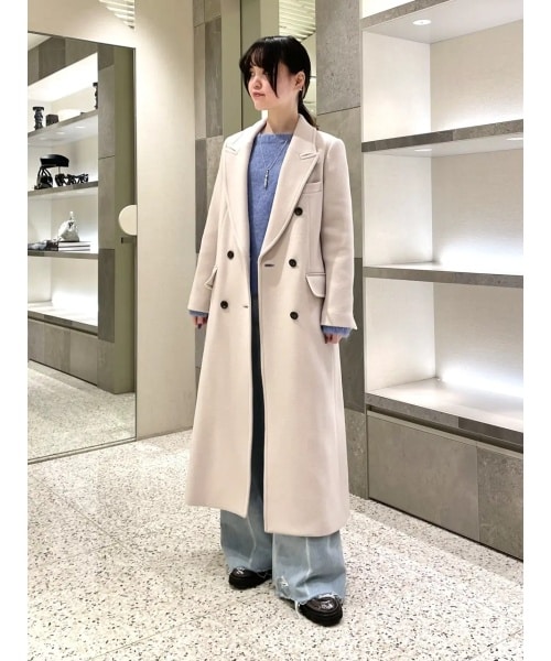 Aラインのすっきりとしたシルエットとセットインが着た時にとても綺麗で、上品に決まるロングチェスターコート。シンプルで洗練されたデザインが年齢関係無く長く使えて、綺麗めにも合わせやすいです。
