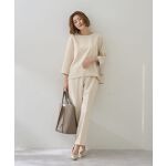 バックフリルをあしらったブラウスと、すっきり見えるストレートパンツのセットアップ。セレモニーシーンからデイリーまで幅広く活躍するおすすめのアイテムです。