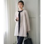上品な佇まいで日常からセレモニーまで活躍するノーカラーコート。 軽やかで立体的な素材に、ゴールドカラーのリングドットボタンを添え、クラシックな雰囲気を漂わせる一着です。
