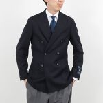 秋冬も好評だった新型のダブルジャケット。 春夏は軽いホップサック生地にのせかえ 腰のポケットはフラップタイプから よりカジュアルなパッチポケットに。 丸みのあるパッチポケットは 柔らかい雰囲気になりますね。