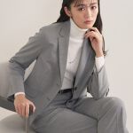ウール素材と合繊の混紡で上品な素材感のジャケットは裏地付きの背抜きです。着丈は少し短め、袖口にスリットで折り返せます。ジャケットと同素材のストレートシルエットのパンツはすっきり見えします!ポリエステル100%の柔らかいブラウスはサイドスリットが入っていて◎