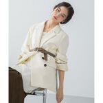 春の新作でホワイトコーデ♪ ジャケットはほどよいゆるっと感ですが、肩の位置が落ちてないので しっかりジャケットとしての綺麗見え、カチッと感も〇 スカートにボリュームをもってきて、コーデのバランスをとりました。