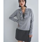 ◆frill knit◆ 柔らかな肌触りで着心地が良いです◎ 中肉よりやや薄手の素材で透け感は、あまり感じにくいです。胸元は深めなのでインナーはマストです。程よいフリルで甘すぎず、さりげなく胸元にポイントがあり、ジャケットなどのインナー使いにもおすすめです◎