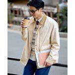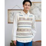 ベージュのライトアウターにデニムを合わせた、きれいめカジュアル。柄ニットで程よく遊び心をプラス。カフェにも街歩きにも相性◎