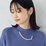 パールネックレスを重ねづけしただけの時短コーディネート。