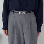 ●スタイリングポイント ネイビーのブラウスセットアップなので、ネックレスで目線を上に、ベルトでウエストマークですっきり見えるようにしました!
