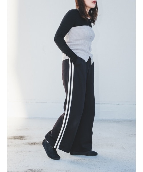バレエコアな足元を作ってくれるARTISTE-XSは薄ソールで快適な履き心地。ブラックまとめとパンツでストリートカジュアルな恰好ながらも、足もとのサテンレースアップシューズで、女性らしさもプラスしてみました。