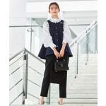 【ありふれたデザインでは物足りない 旬テクスチャーの掛け合わせ】 控えめラメツイード×フラワーテープで圧倒的カワイイを実現。 可愛いママのリアルバイ・セットスーツ "ハレの日"も普段使いにも楽しめる【ジレ】+【パンツ】の2点セット