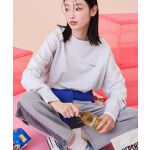 【着用サイズ スウェット:F スカート:M】ヴィンテージライクなフェードしたカラーがポイントのスウェット。オゾン加工を施し、環境に配慮してつくられたアイテムです。