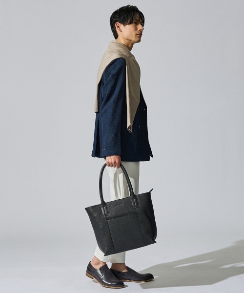 ジャケットスタイルを格上げする、上質なトートバッグ。洗練されたシルエットと実用的な収納設計で、通勤から週末まで幅広く使えます。