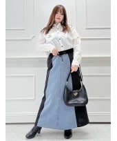 肩レースダンボールZIPパーカーをメインにしたBLACKコーディネート! 同じラインのパンツとセットアップにできるアイテムなので、是非セットで着てみてください☆ チュールパイピングマーメイドスカートはカジュアル好きな私でも履けるスカートなのでカジュアル好きさんにもおすすめ!