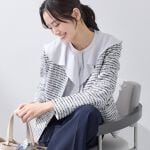 ツイードジャケットは身幅、腕回り共にゆとりのあるデザイン!ワンピースのウエストギャザー部分はゴムなのでスッキリ見えしますが、窮屈さを感じずにお召し頂けます♪腕周りはゆとりのあるデザインですがお素材が薄手なのでジャケット合わせも相性◎