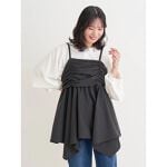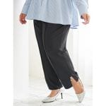 WEB限定ビスチェはヒップまで隠れる丈感で、体型カバーにもおすすめ◎ 合わせるインナー次第で、ロングシーズン着回せるのも嬉しい♪ パンツは 裾にスリットが入っているだけでなくパール装飾も付いており、お仕事の日はもちろん、お休みの日のお出かけにも着られる嬉しい万能アイテムです◎
