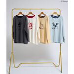 【着用サイズ Tシャツ:F プルオーバー:M スカート:M】Tシャツはプリント部分と衿ぐりのバインダーを同色で揃え、統一感のある仕上がりに。色あせたようなボディカラーにすることで、程よくビンテージライクな風合いを演出しました。