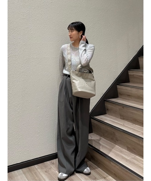 中央に施されているモノグラムのエンボスが シンプルながらもアクセントになるレザーバッグ! ショルダーベルトもセットになっており、 斜めがけや肩がけとしてお使いいただけます◎