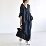 普段サイズ:36 骨格:ウェーブ パーソナルカラー:ブルべ冬 異素材切り替えの袖がポイントのセットアップがメインのスタイリング。 単品でも使えて、通勤や行事など幅広いシーンにマッチします◎