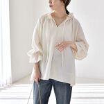 quaranciel:〈洗濯機可能〉フリルカラー リボン ギャザースリーブ ブラウス
