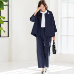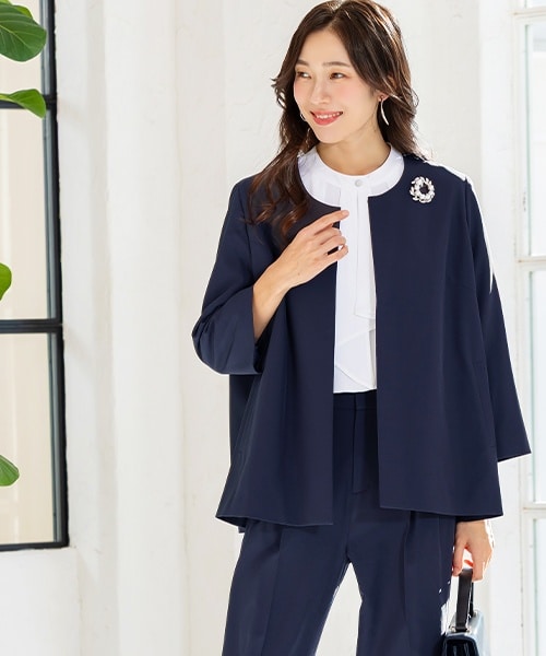 Aラインジャケット×ワイドパンツの大人のこなれスーツ。 セレモニーにもオフィスにもなじむ万能スーツです。 しわになりにくいストレッチ素材 × ゆったり設計で体型カバーも着心地も抜群◎ ご家庭で洗濯可能。S / M / L / LL / 3L / 4L とサイズも豊富◎