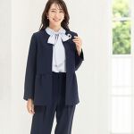 ウエスト切替ジャケット×ワイドパンツスーツ。気になる腰回りもカバー◎ セレモニーにもオフィスにもなじみます。 しわになりにくいストレッチ素材 × ゆったり設計で体型カバーも着心地も抜群◎ ご家庭で洗濯可能。S / M / L / LL / 3L / 4L とサイズも豊富。