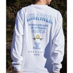 【トップス】フロントは控えめなワンポイント刺繍、背中にはコラボならではの存在感あるバックプリントロンT。 【ボトムス】気負わずはけるイージー仕様に、ワークの表情を重ねたペインターパンツ。