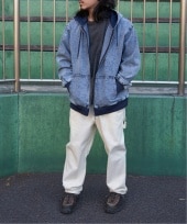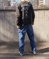 【トップス】THRASHERらしい無骨さと、古着のようなムードをまとったピグメントロンT。 【ボトムス】ゆったりとした履き心地と、立体的なフォルムが魅力のタックコクーンパンツ。