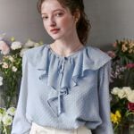 【着映え・洗える】ラメカットドビーフリルブラウス