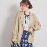 華やかなブラウスは目を惹くピンクをセレクト。 アウターやボトムにはベーシックカラーを合わせて大人カジュアルなスタイルにしました。