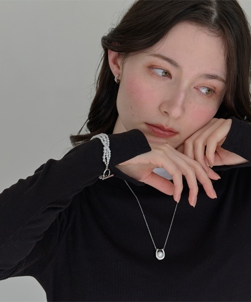 ブラックのニットに映えるパールホワイト。シンプルなコーデにデコラティブなパールアクセを添えれば、一段と華やかで上品にクラスアップ。意外に取り入れやすい普段使いパール。濃い色な装いが増える冬こそおすすめです。