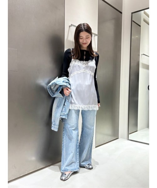 今年トレンドのレースキャミを主役にコーディネート。カーディガンのホックから覗く肌見せでモード感をプラスしてみました。 デニムは26インチでジャストサイズです。