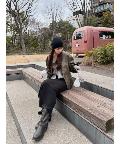 ●【Re】grain zip over blouson 人気のフェイクレザーブルゾン。袖口と背面にファスナーがあり、インナーのデザインをチラ見せして着るのも◎