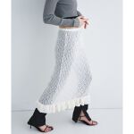 〇sensual lace tight skirt ストレッチの効いたレース素材なので、タイトシルエットでも足捌きしやすいです。ペチコートが付いているのでスカート単体でも良いですし、レーススカートとパンツでレイヤードスタイルを楽しめるのも嬉しいポイントです◎