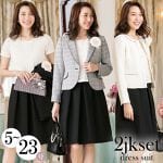 着回し自在な2点のジャケットとレース生地切替ワンピースの3点セットスーツです。