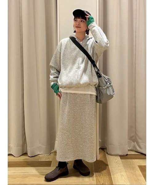 ◎トップス ダブルジップのパーカー。 裾ドロストでシルエットも変えられます。 ◎ボトムス 柔らかい素材のスカート。 ウエストゴムでらくちんな履き心地。
