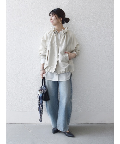 SHIPS any:〈洗濯機可能〉ナイロン タスラン ギャザー スタンドカラー ブルゾン
