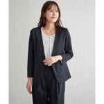 "デイリーからビジネスシーンまで、洗練された印象を与えるベーシックなVネックジャケット。 ポンチ素材ならではの美しい表面感と、中肉のしっかりとした生地感が絶妙なバランスを実現しました。" モデル身長165cm、着用サイズM