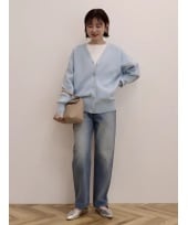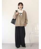 【着用サイズ ニット:M カーディガン:F】柔らかく温かみのあるニット素材で、見た目にもやさしい印象のカーディガン。マットな表面感なので、きれいめになりすぎずデイリーに使いやすい素材感です。
