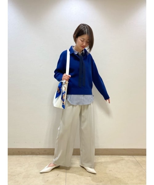 ブルーをメインにして爽やかなイメージにしました。ニット×シャツのレイヤードスタイルがおすすめです。