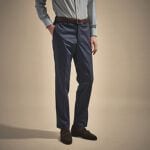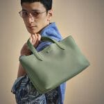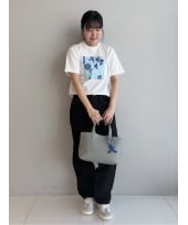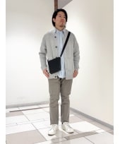 ニットにスラックスのシンプルなスタイル。 カバンで色を差したところがポイント。