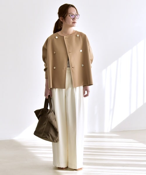 quaranciel:〈手洗い可能〉ニット ノーカラー ダブル ジャケット カーディガン